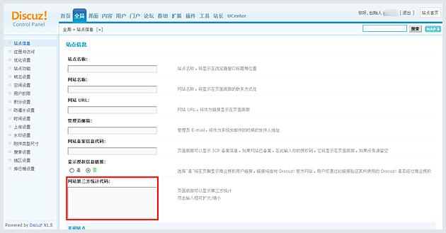 首先獲取在線客服安裝代碼,然后登陸discuz 后臺(tái),進(jìn)入全局>站點(diǎn)信息>,復(fù)制在線客服代碼