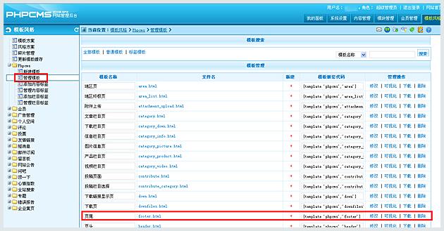 首先獲取在線客服安裝代碼,然后登陸phpcms后臺,進入模板風(fēng)格》phpcms 管理模板,找到頁尾