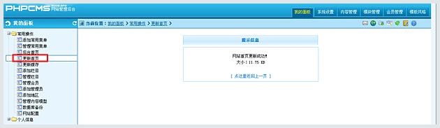 然后進入我的面板,點擊常用操作下的“更新首頁”完成。 見圖:
